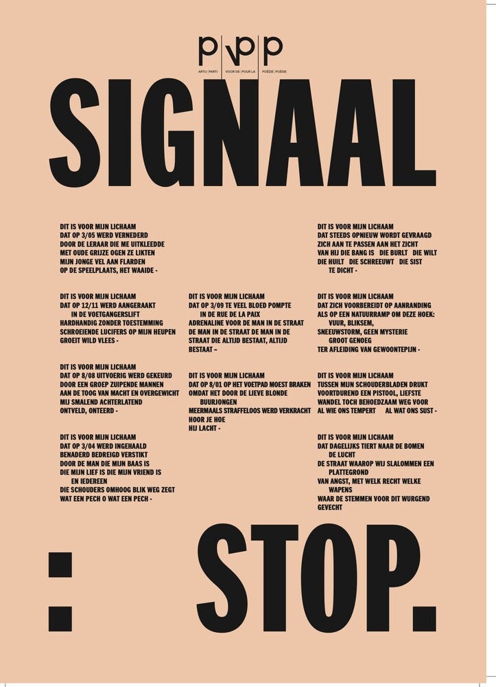 Actie van Partij Voor De Poëzie : Signaal STOP (Astrid Haerens)